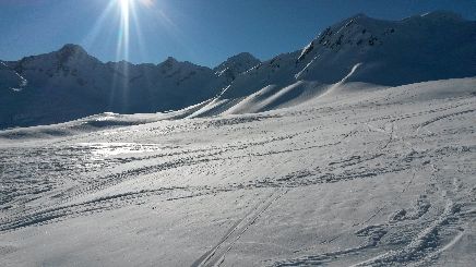Ein Berg mal anders herum: Nach 1500m Abstieg muss man erst mal wieder hoch. Im Winter auch gut an einem Tag machbar, wenn man die entsprechende Kondition hat.